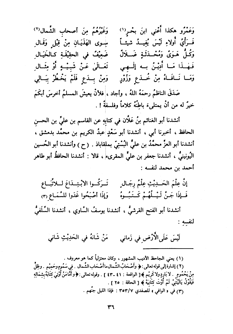 وَعَمْرٌو هَكَذَا أَعنِي ابْنَ بَحْرٍ (1) ... وَغَيْرهُم مِنْ أَصْحَابِ الشِّمَالِ (2)
