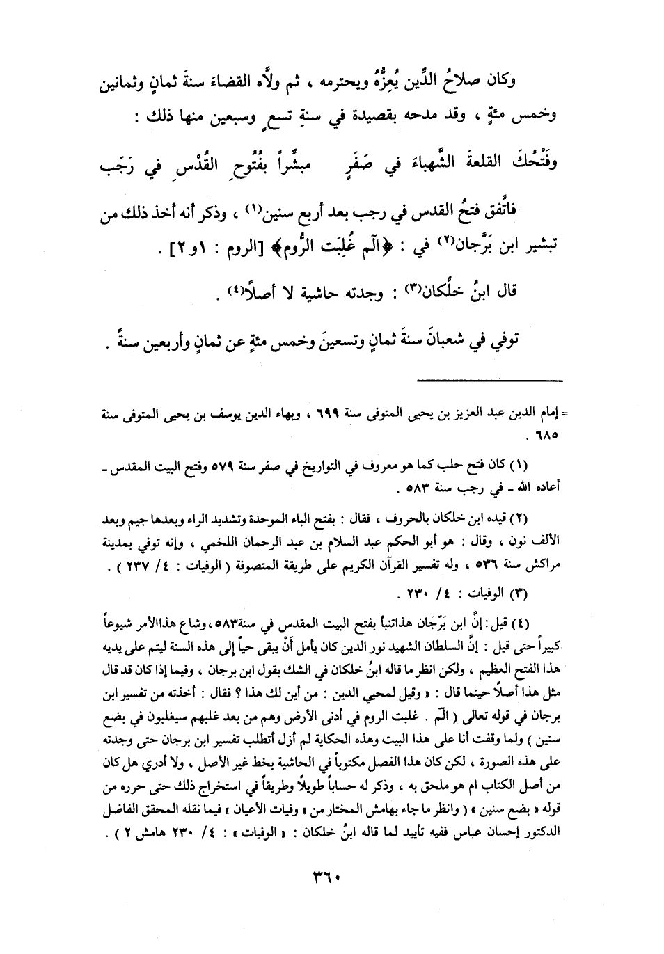قَالَ ابْنُ خَلِّكَانَ (3) : وَجَدْته حَاشيَة لاَ أَصلاً (4) .