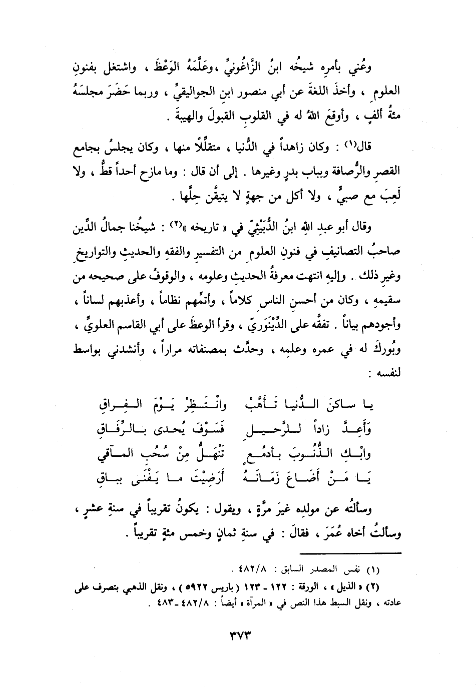 (2) (الذيل) ، الورقة: 122 - 123 (باريس 5922) ، ونقل الذهبي بتصرف على عادته، ونقل السبط هذا النص في (المرآة) أيضا: 8 / 482 - 483.