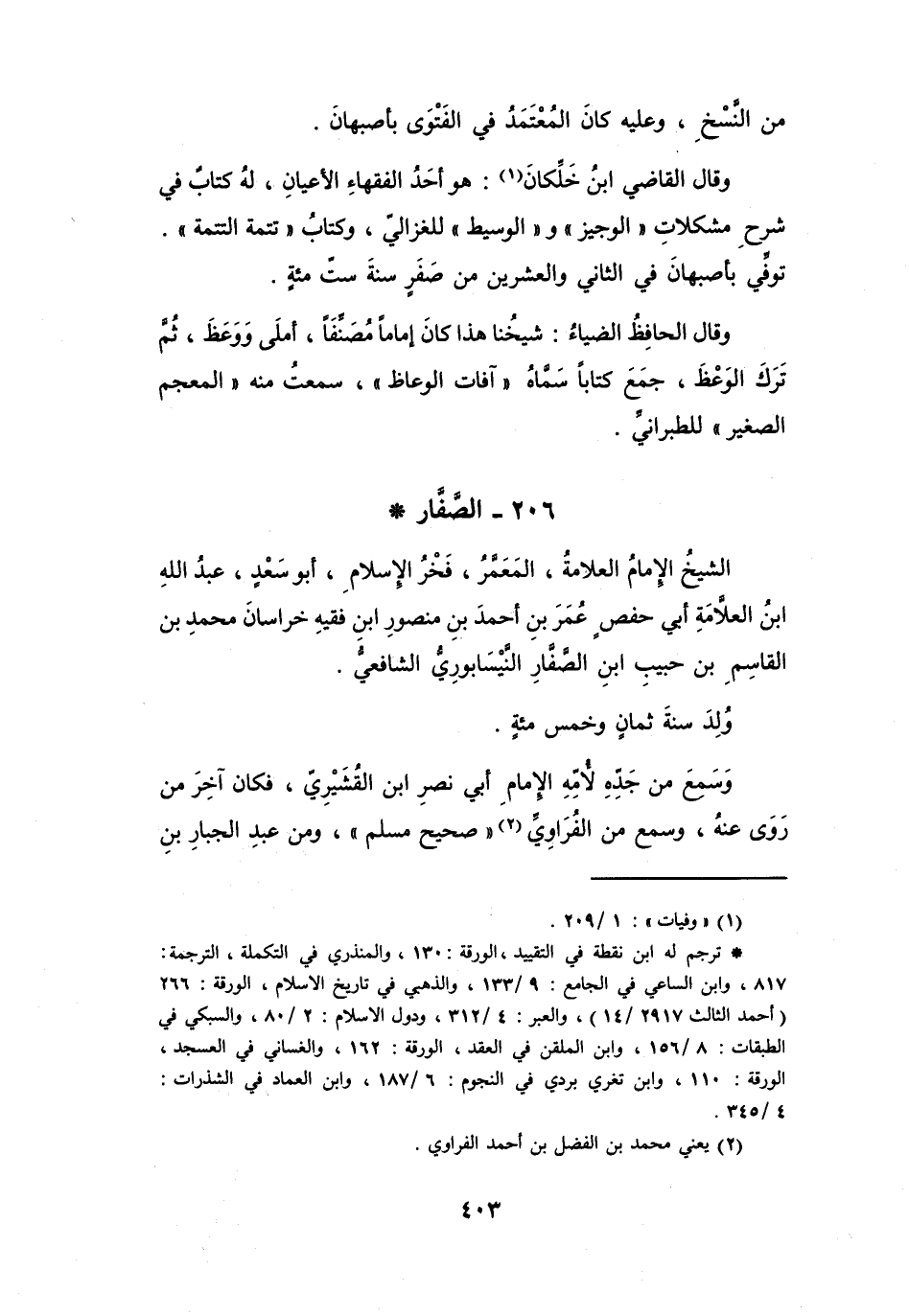 206 - الصَّفَّارُ أَبُو سَعْدٍ عَبْدُ اللهِ بنُ عُمَرَ بنِ أَحْمَدَ *