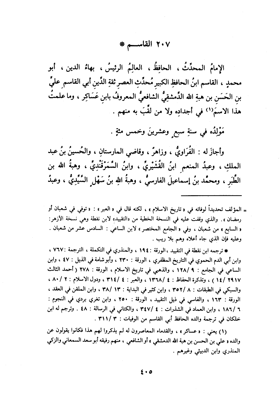 207 - القَاسِمُ بنُ عَلِيِّ بنِ الحَسَنِ، ابْنُ عَسَاكِرَ الدِّمَشْقِيُّ *