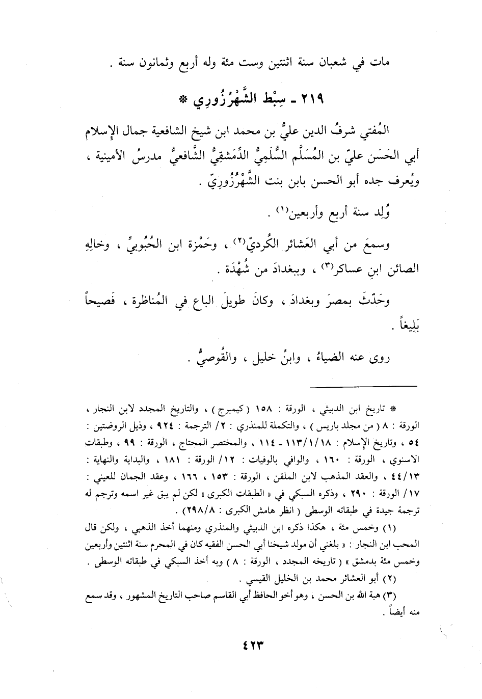 219 - سِبْطُ الشَّهْرُزُوْرِيِّ، عَلِيُّ بنُ مُحَمَّدِ بنِ عَلِيِّ بنِ المُسَلَّمِ *