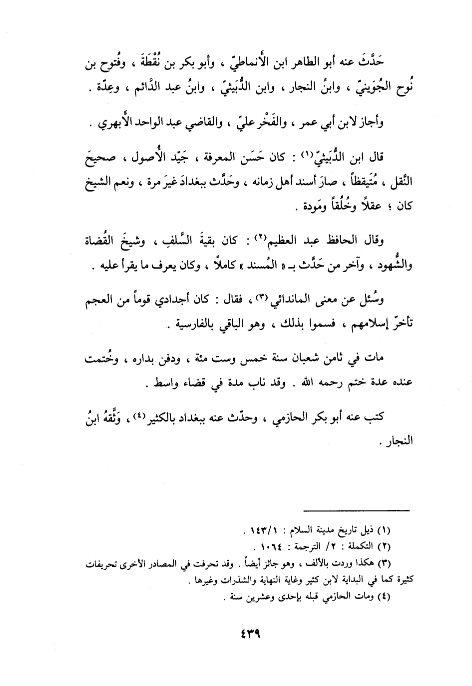 (1) ذيل تاريخ مدينة السلام: 1 / 143.