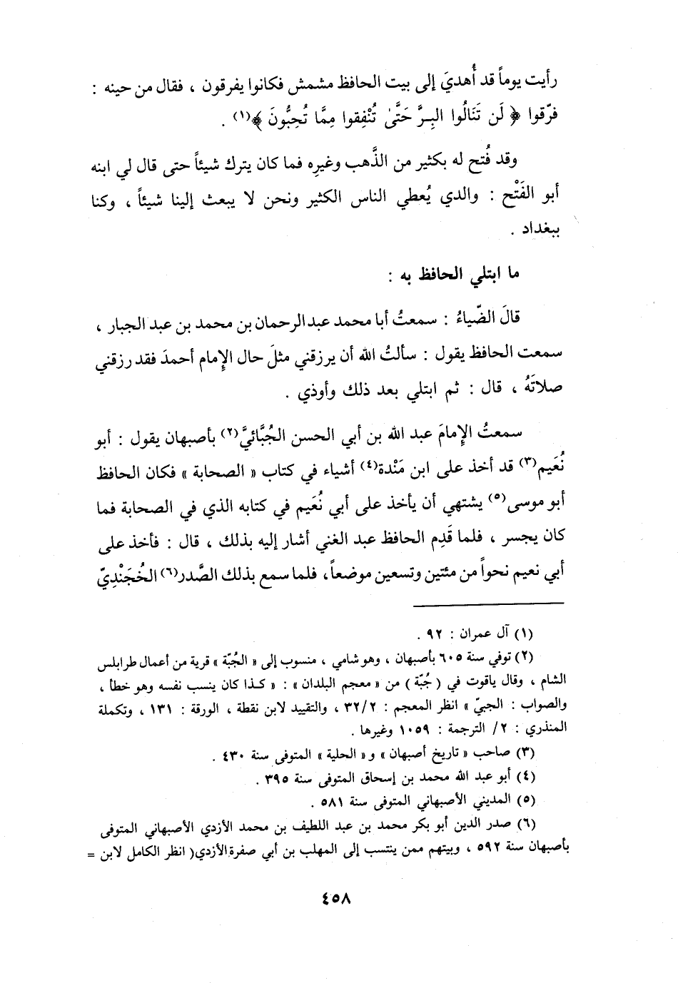 (2) توفي سنة 605 بأصبهان، وهو شامي، منسوب إلى (الجبة) قرية من أعمال طرابلس الشام، وقال ياقوت في (جبة) من (معجم البلدان) : (كذا كان ينسب نفسه وهو خطأ، والصواب: الجبي) انظر المعجم: 2 / 32، والتقييد لابن نقطة، الورقة: 131، وتكملة المنذري: 2 / الترجمة: 1059 وغيرها.