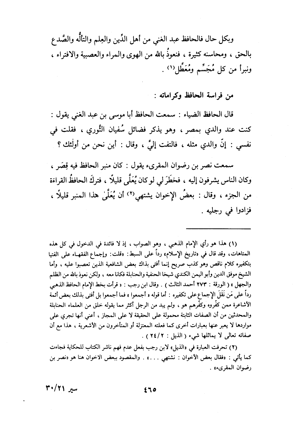 (2) تحرفت العبارة في (الذيل) لابن رجب بفعل عدم فهم ناشر الكتاب للحكاية فجاءت كما يأتي: (فقال بعض الاخوان: نشتهي..) .