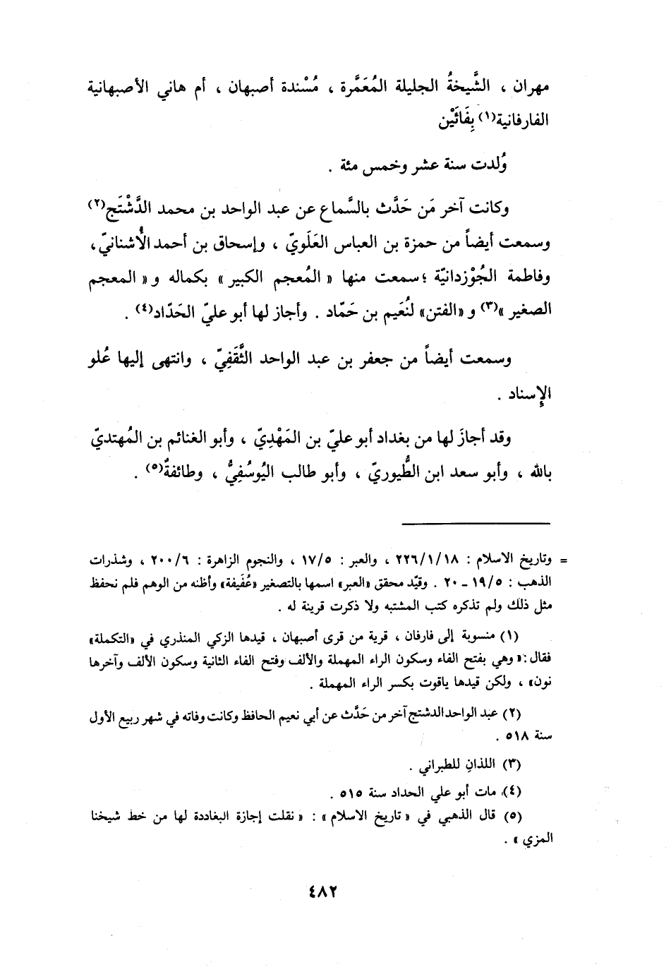 (2) عبد الواحد الدشتج آخر من حدث عن أبي نعيم الحافظ وكانت وفاته في شهر ربيع الأول سنة 518.
