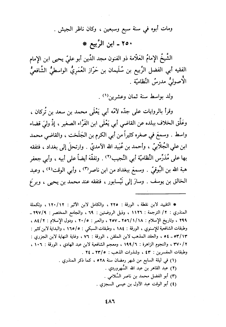 (*) التقييد لابن نقطة، الورقة: 225، والكامل لابن الأثير: 12 / 120، وتكملة المنذري: 2 / الترجمة: 1126، وذيل الروضتين: 69، والجامع المختصر: 9 / 297 - 299، وتاريخ الإسلام: 18 / 1 / 256 - 257، والعبر: 5 / 20، ودول الإسلام: 2 / 84، وطبقات الشافعية للاسنوي، الورقة: 184، وطبقات السبكي: 5 / 165، والبداية لابن كثير: 13 / 53 - 54، والعقد المذهب لابن الملقن، الورقة: 76، وغاية النهاية لابن الجزري: 2 / 370، والنجوم الزاهرة: 6 / 199، ومعجم الشافعية لابن عبد الهادي، الورقة: 106، وطبقات المفسرين: 43، وشذرات الذهب: 5 / 23 - 24.