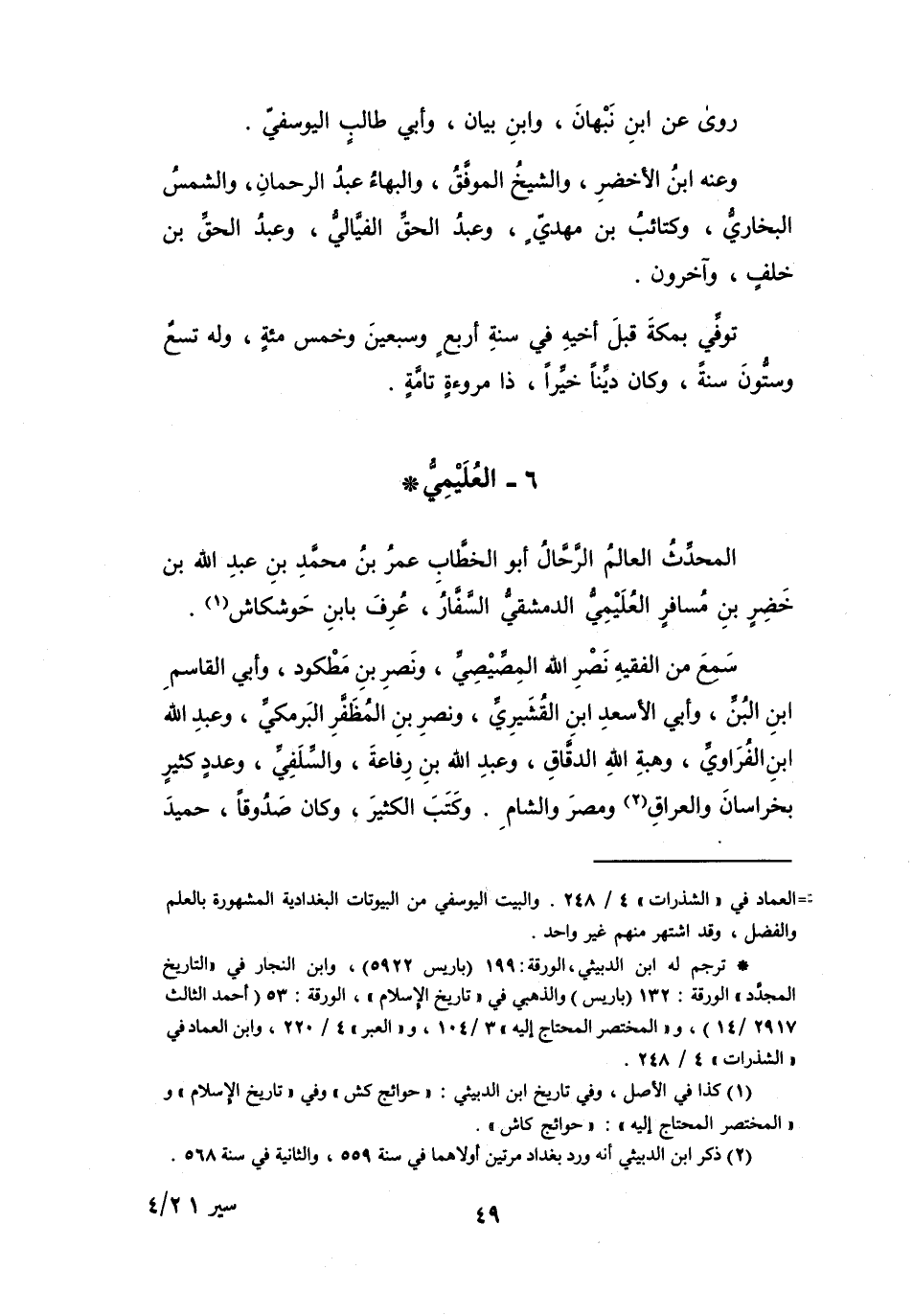 6 - العُلَيْمِيُّ أَبُو الخَطَّابِ عُمَرُ بنُ مُحَمَّدِ بنِ عَبْدِ اللهِ *