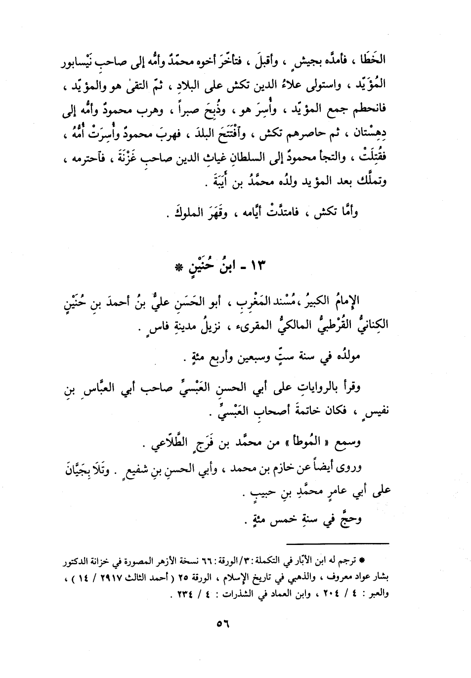13 - ابْنُ حُنَيْنٍ أَبُو الحَسَنِ عَلِيُّ بنُ أَحْمَدَ بنِ حُنَيْنٍ الكِنَانِيُّ *
