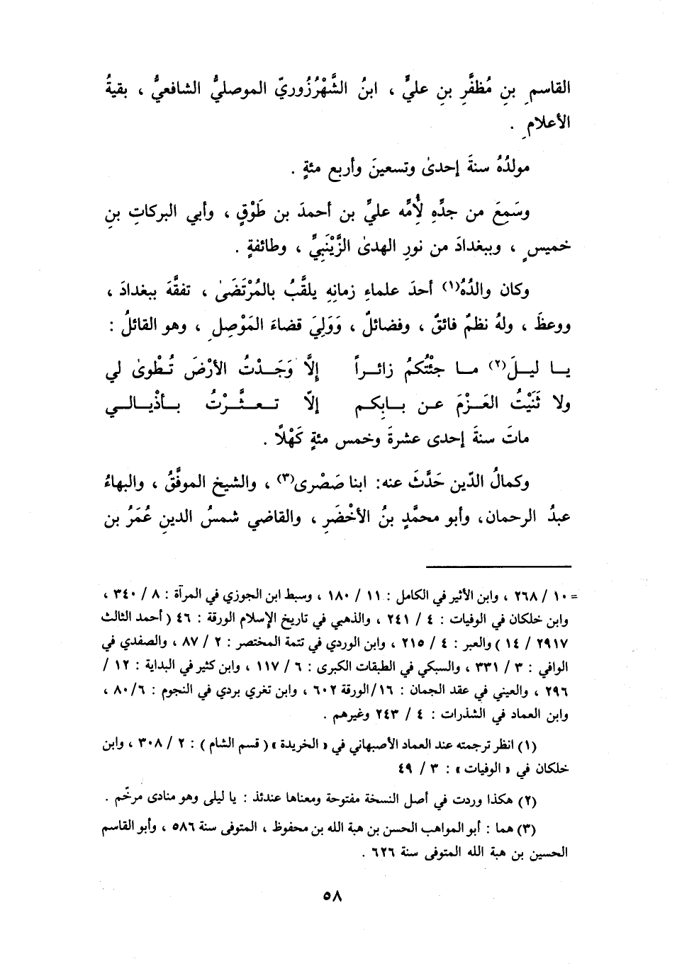 القَاسِم بن مُظَفَّر بن عَلِيٍّ، ابْنُ الشَّهْرُزُوْرِيِّ المَوْصِلِيُّ، الشَّافِعِيُّ، بَقِيَّةُ الأَعْلاَمِ.