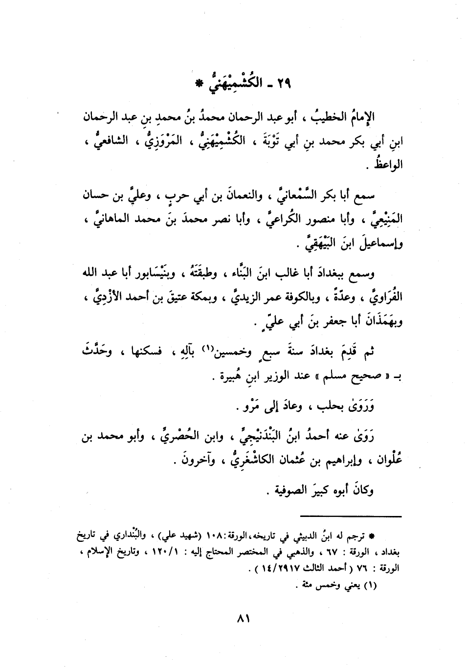 29 - الكُشْمِيْهَنِيُّ مُحَمَّدُ بنُ مُحَمَّدِ بنِ عَبْدِ الرَّحْمَانِ *