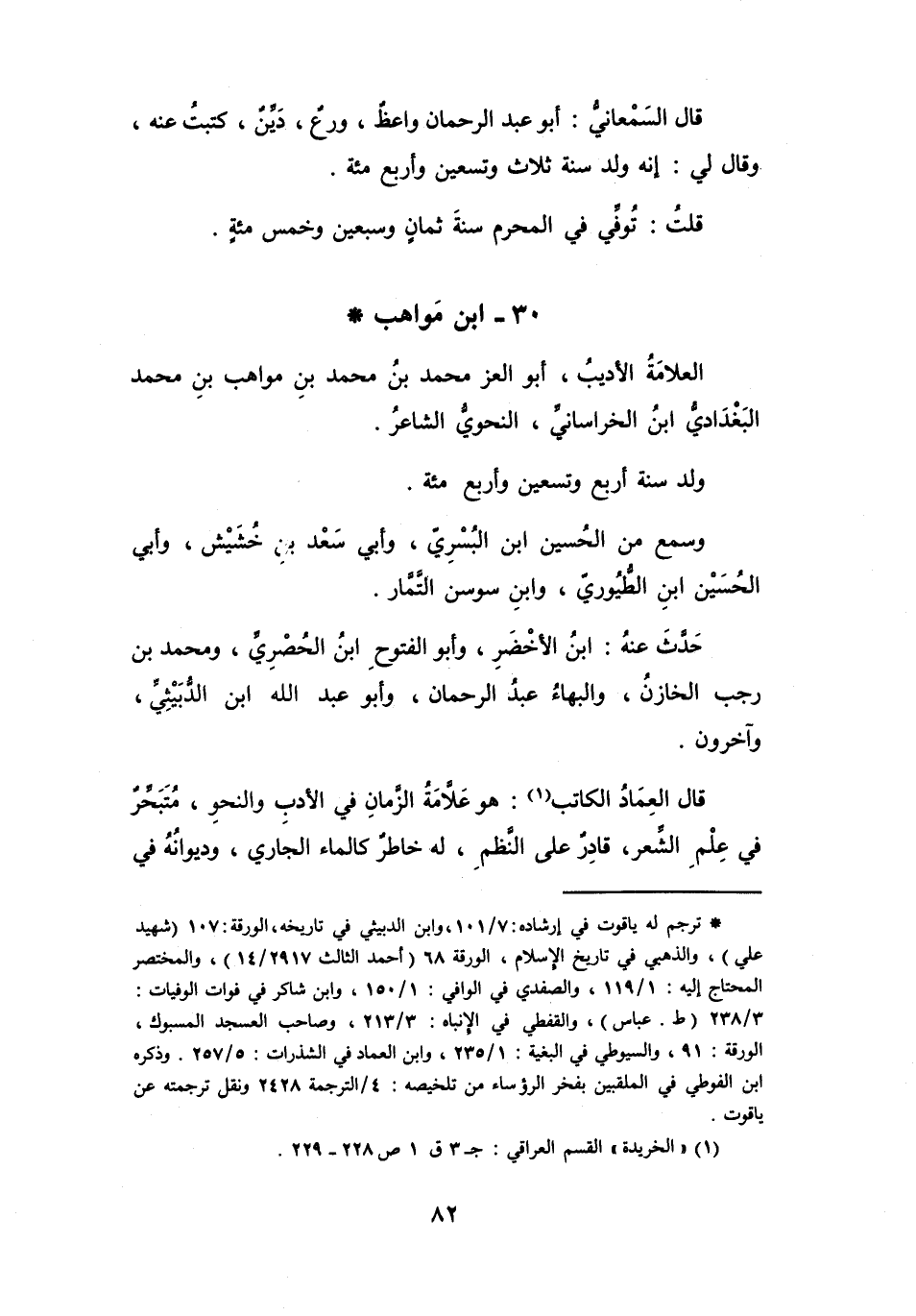 30 - ابْنُ مَوَاهِبَ أَبُو العِزِّ مُحَمَّدُ بنُ مُحَمَّدٍ البَغْدَادِيُّ *
