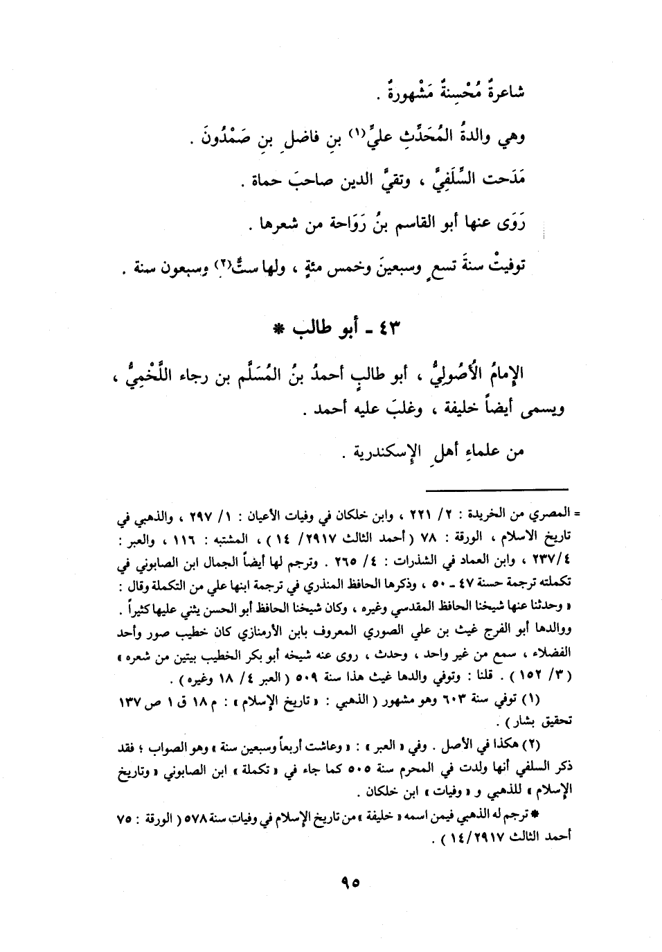 43 - أَبُو طَالِبٍ أَحْمَدُ بنُ المُسَّلَمِ بنِ رَجَاءٍ اللَّخْمِيُّ *