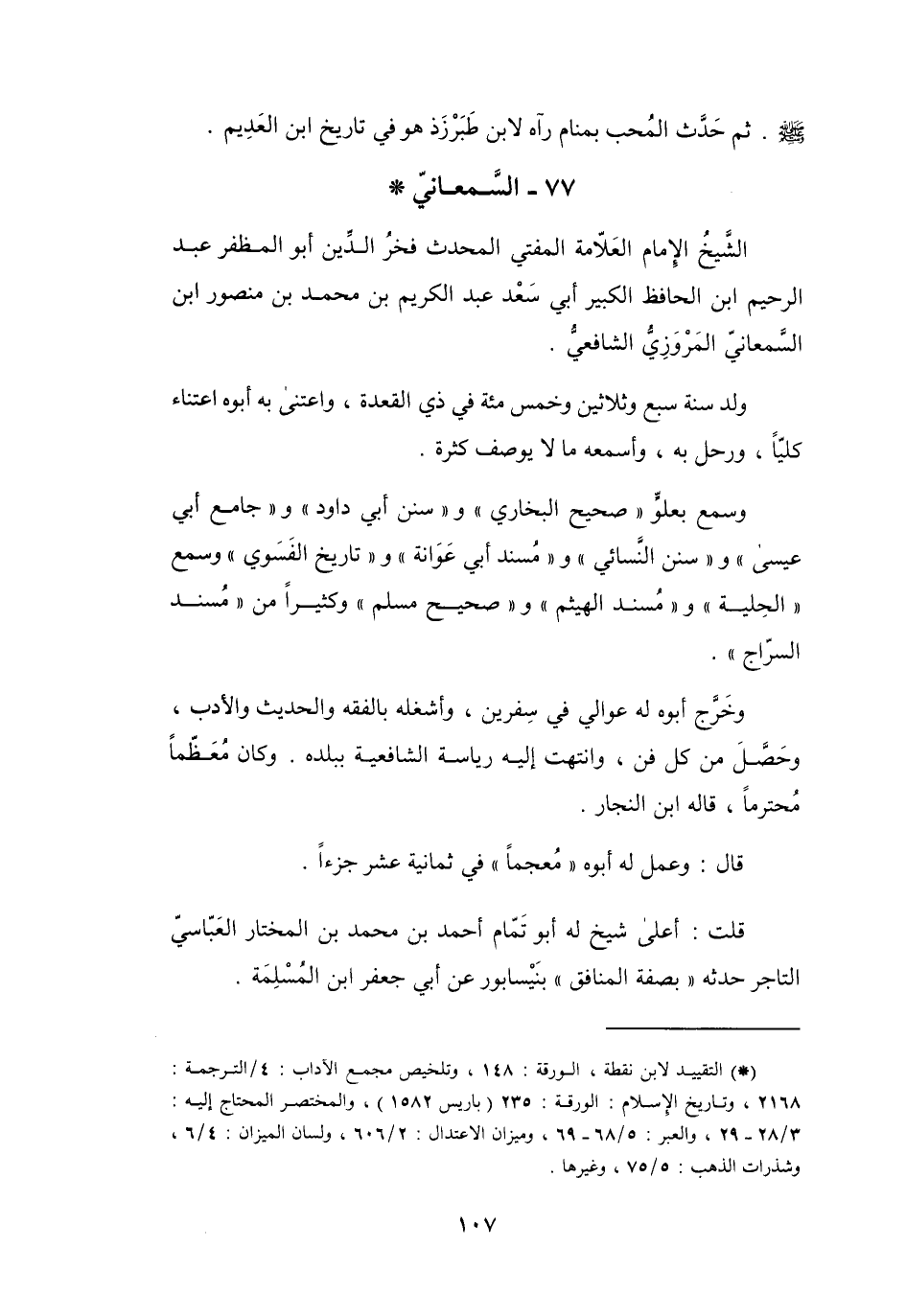 77 - السَّمْعَانِيُّ عَبْدُ الرَّحِيْمِ بنُ عَبْدِ الكَرِيْمِ بنِ مُحَمَّدٍ *