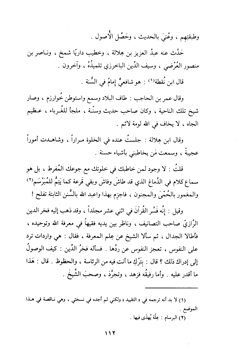 قَالَ ابْنُ نُقْطَة (1) : هُوَ شَافعِيّ، إِمَام فِي السُّنَّةِ.