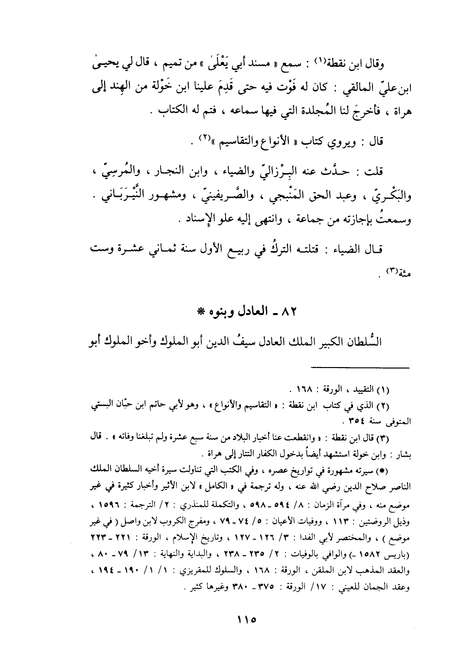 (2) الذي في كتاب ابن نقطة: " التقاسيم والانواع "، وهو لأبي حاتم ابن حبان البستي المتوفى سنة 354.
