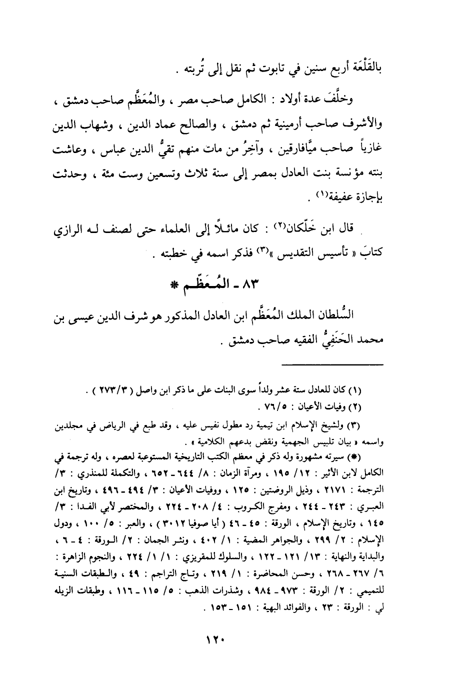 83 - المُعَظَّمُ عِيْسَى بنُ مُحَمَّدِ بنِ أَيُّوْبَ بنِ شَاذِي الدُّوِيْنِيُّ *