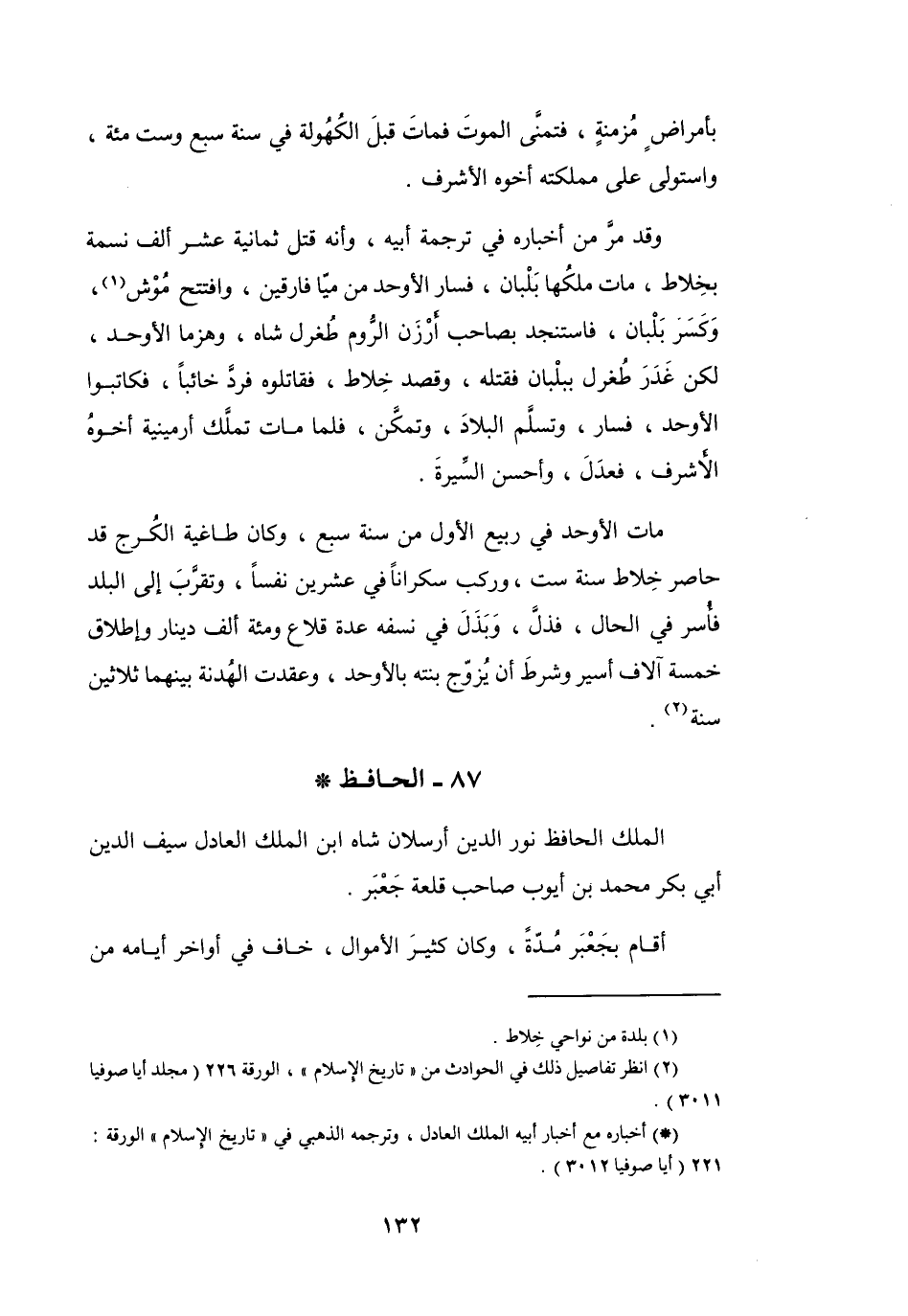 87 - الحَافِظُ نُوْرُ الدِّيْنِ أَرْسَلاَن شَاه ابْنُ المَلِكِ العَادِلِ *