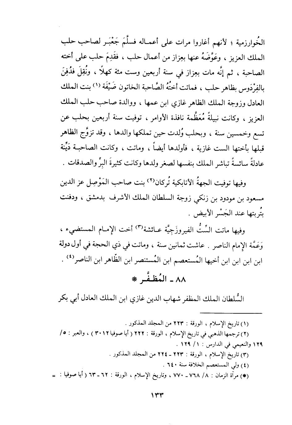 (3) تاريخ الإسلام، الورقة: 223 - 224 من المجلد المذكور.