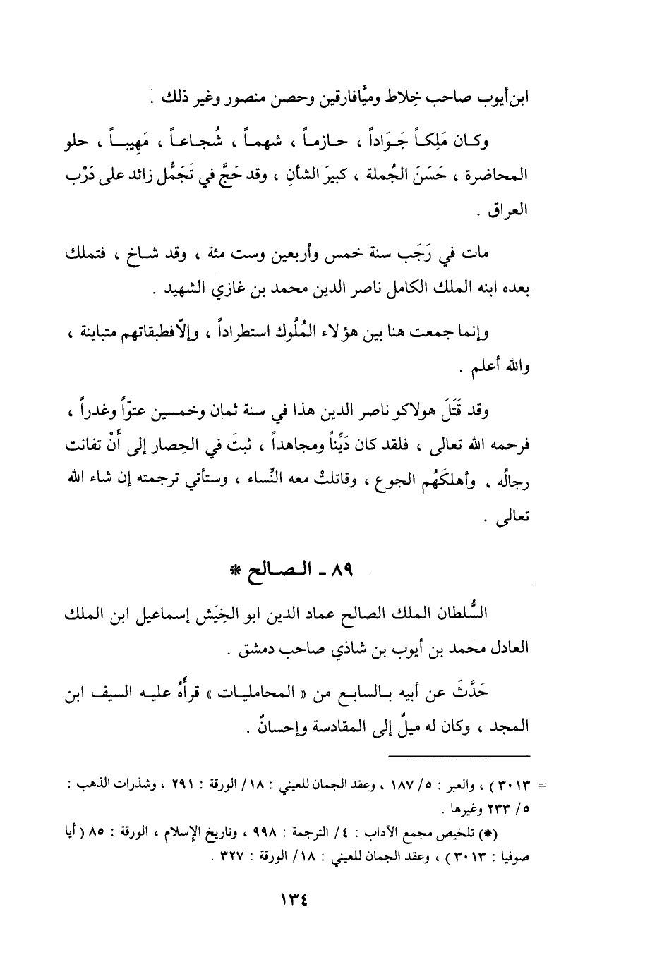 89 - الصَّالِحُ إِسْمَاعِيْلُ ابْنُ المَلِكِ العَادِلِ مُحَمَّدِ بنِ أَيُّوْبَ *