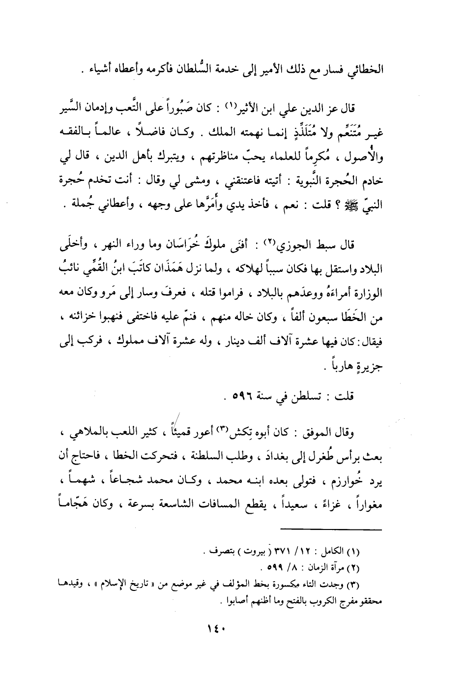 (3) وجدت التاء مكسورة بخط المؤلف في غير موضع من " تاريخ الإسلام "، وقيدها محققو مفرج الكروب بالفتح وما أظنهم أصابوا.