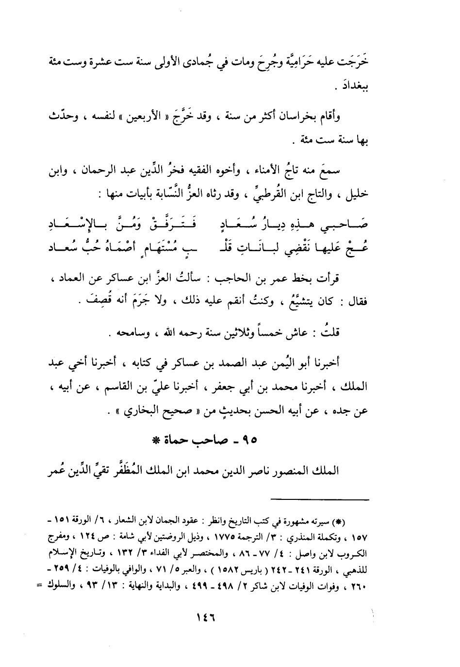 95 - صَاحِبُ حَمَاةَ المَنْصُوْرُ مُحَمَّدُ بنُ عُمَرَ بنِ شَاهِنْشَاه بنِ أَيُّوْبَ *