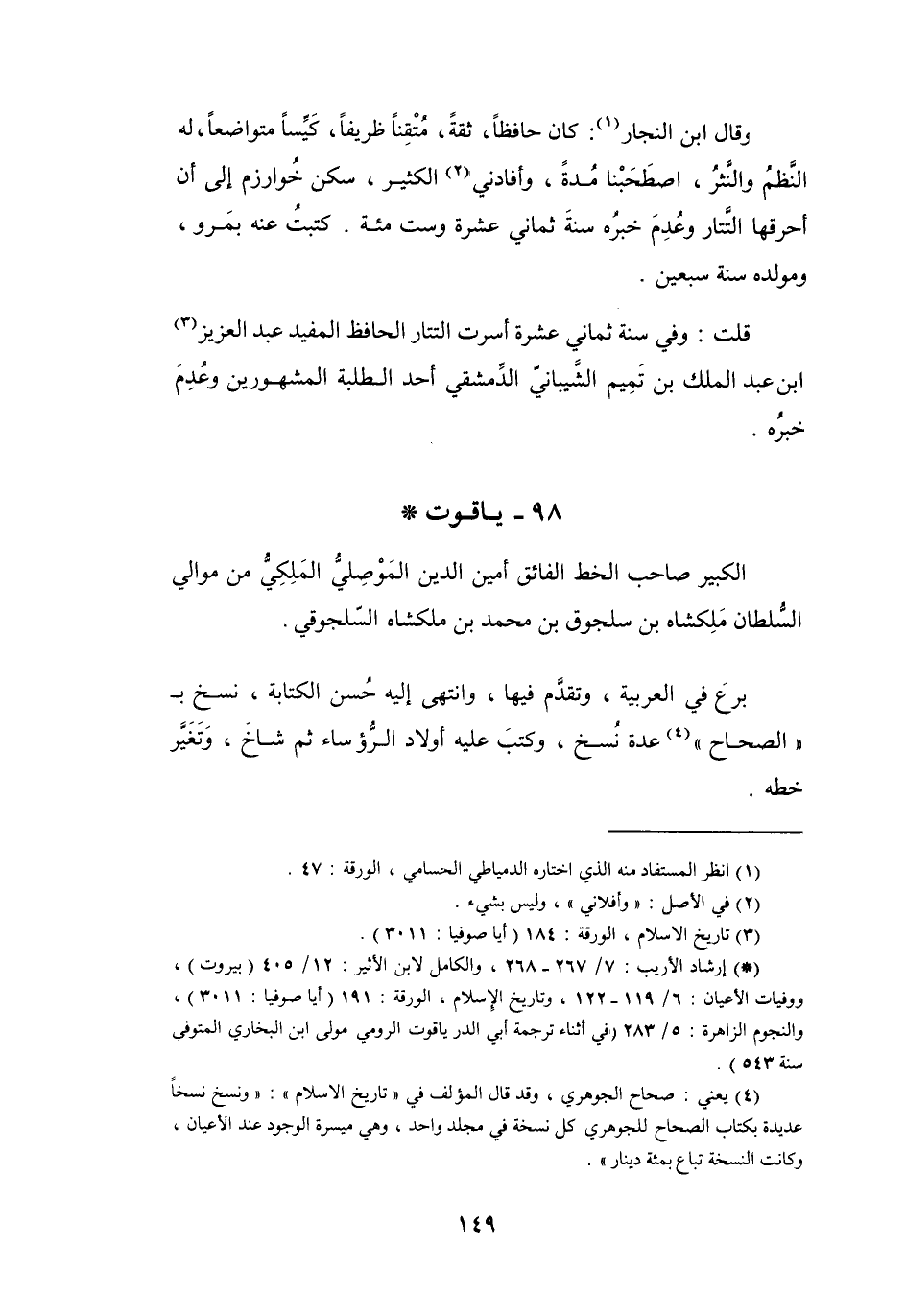 98 - يَاقُوْتُ الكَبِيْرُ أَمِيْنُ الدِّيْنِ المَوْصِلِيُّ المَلِكِيُّ *
