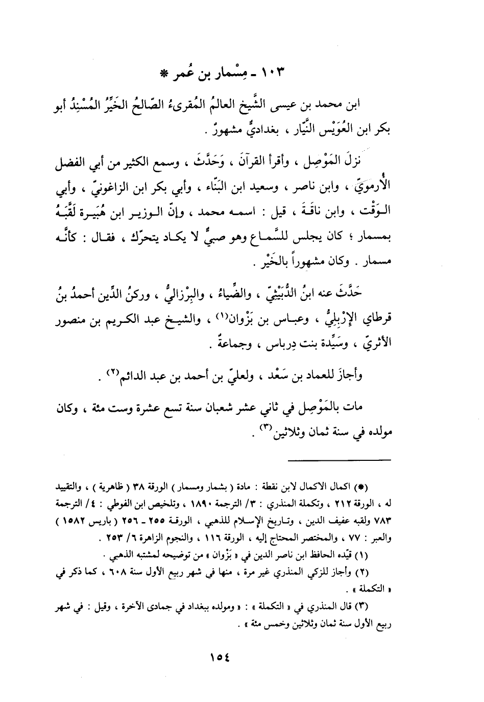 (*) اكمال الإكمال لابن نقطة: مادة (بشمار ومسمار) الورقة 38 (ظاهرية) ، والتقييد