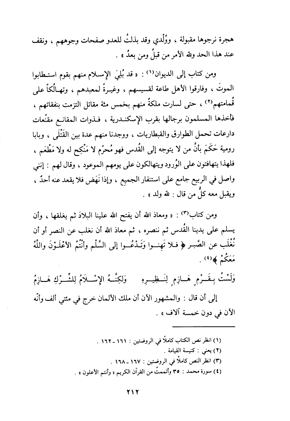 (1) انظر نص الكتاب كاملا في الروضتين: 161 - 162.