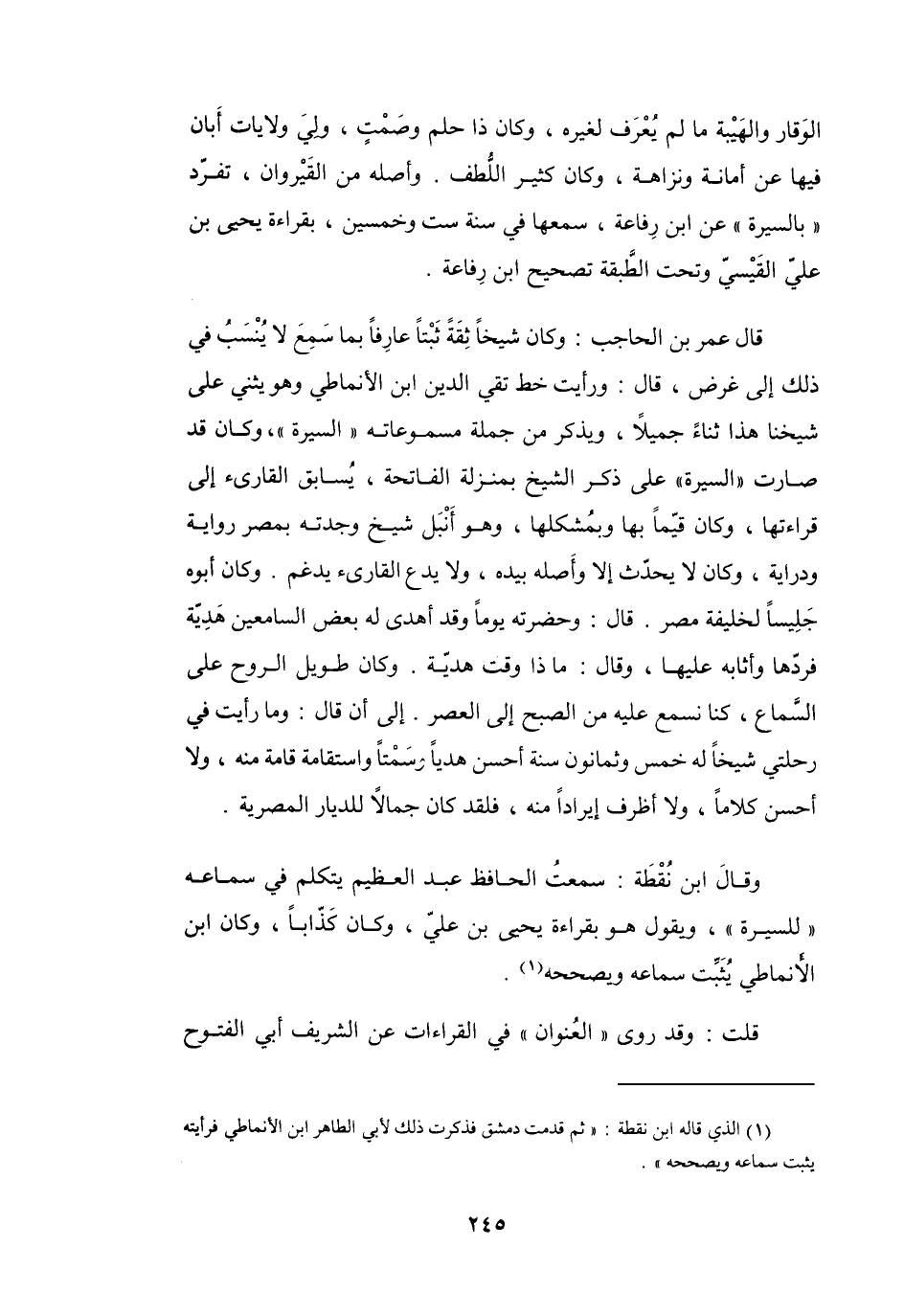 (1) الذي قاله ابن نقطة: " ثم قدمت دمشق فذكرت ذلك لأبي الطاهر ابن الأنماطي فرأيته يثبت سماعه ويصححه ".