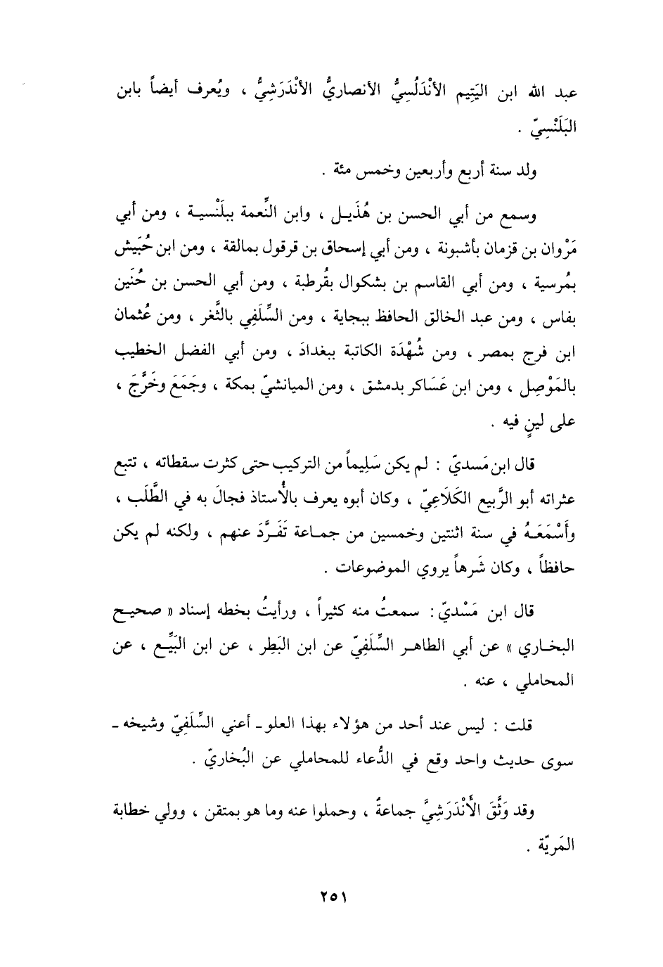 وَقَدْ وَثَّقَ الأَنْدَرَشِيَّ جَمَاعَةٌ، وَحَمَلُوا عَنْهُ، وَمَا هُوَ بِمُتْقِنٍ، وَوَلِيَ خِطَابَةَ المَرِيَّةِ.