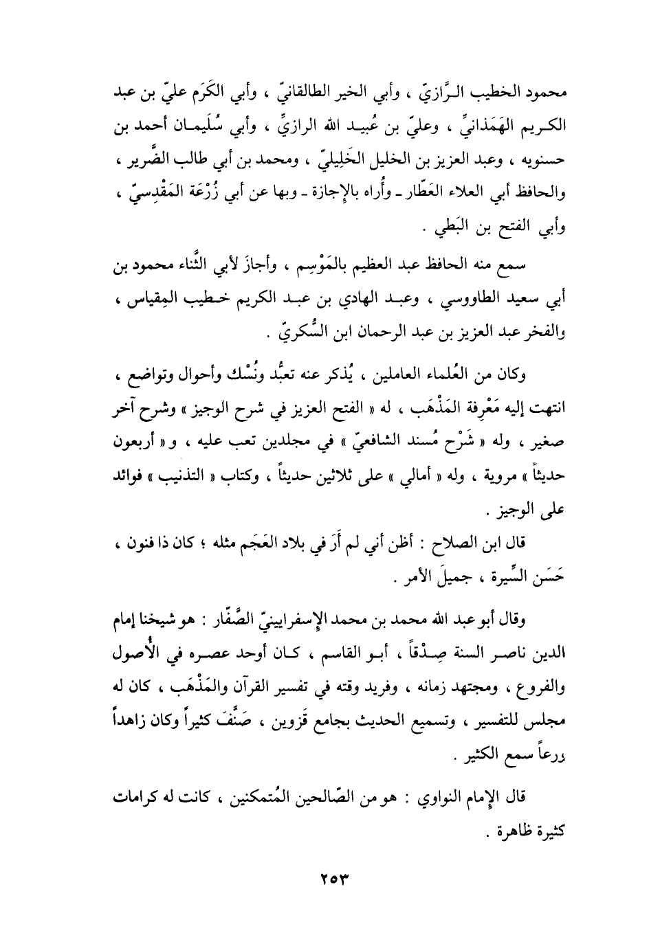 قَالَ ابْنُ الصَّلاَحِ: أَظَنُّ لَمْ أَرَ فِي بلاَدِ العجمِ مِثْلَهُ، كَانَ ذَا فُنُوْنٍ، حَسَنَ السِّيْرَةِ، جَمِيْلَ الأَمْرِ.