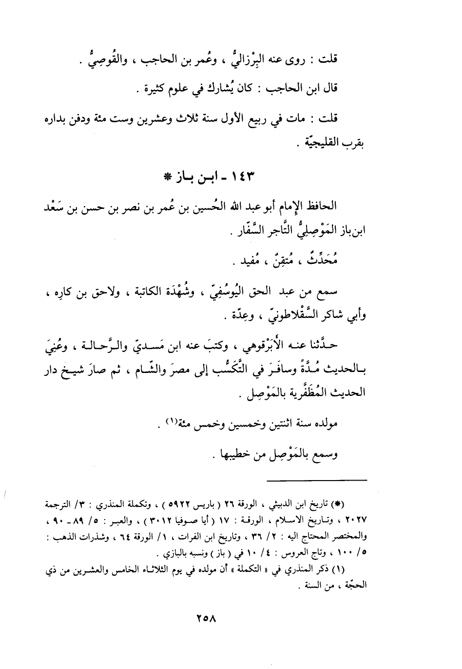 143 - ابْنُ بَازٍ الحُسَيْنُ بنُ عُمَرَ بنِ نَصْرٍ المَوْصِلِيُّ *