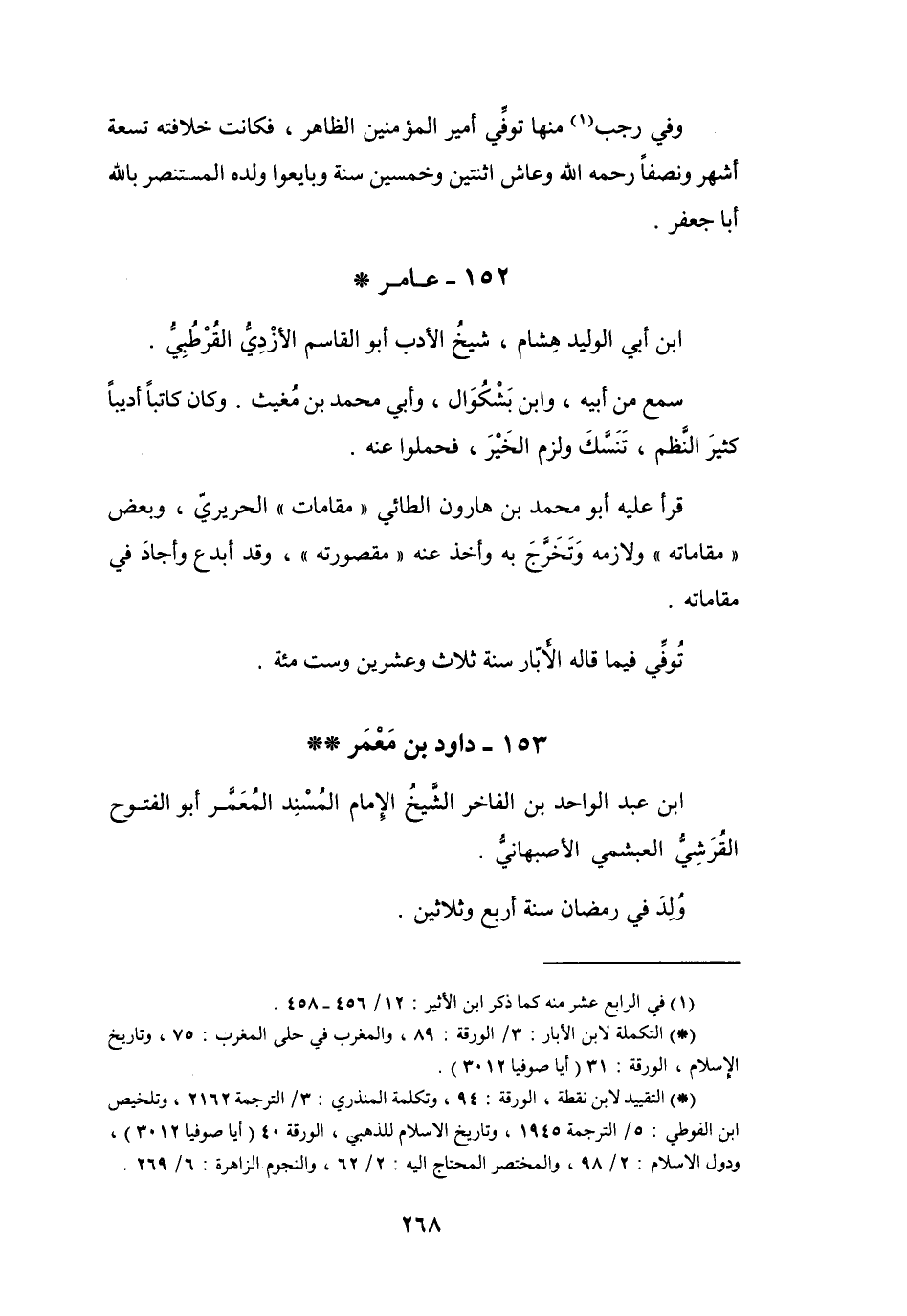 (* *) التقييد لابن نقطة، الورقة: 94، وتكملة المنذري: 3 / الترجمة 2162، وتلخيص ابن الفوطي: 5 / الترجمة 1945، وتاريخ الإسلام للذهبي، الورقة 40 (أيا صوفيا 3012) ، ودول الإسلام: 2 / 98، والمختصر المحتاج إليه: 2 / 62، والنجوم الزاهرة: 6 / 269.