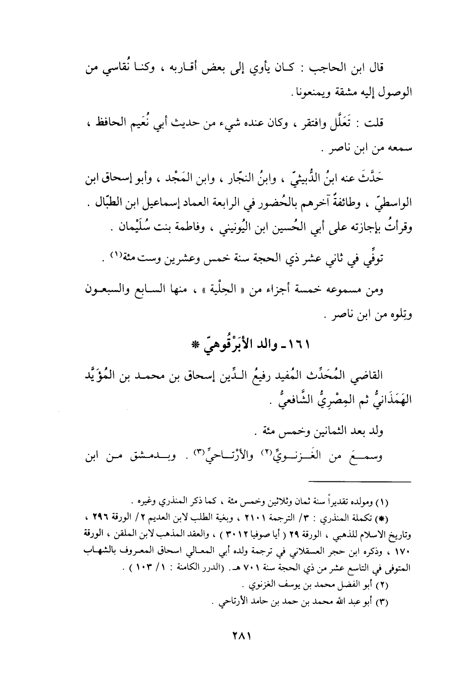 161 - وَالِدُ الأَبَرْقُوْهِيِّ إِسْحَاقُ بنُ مُحَمَّدِ بنِ المُؤَيَّدِ الهَمَذَانِيُّ *