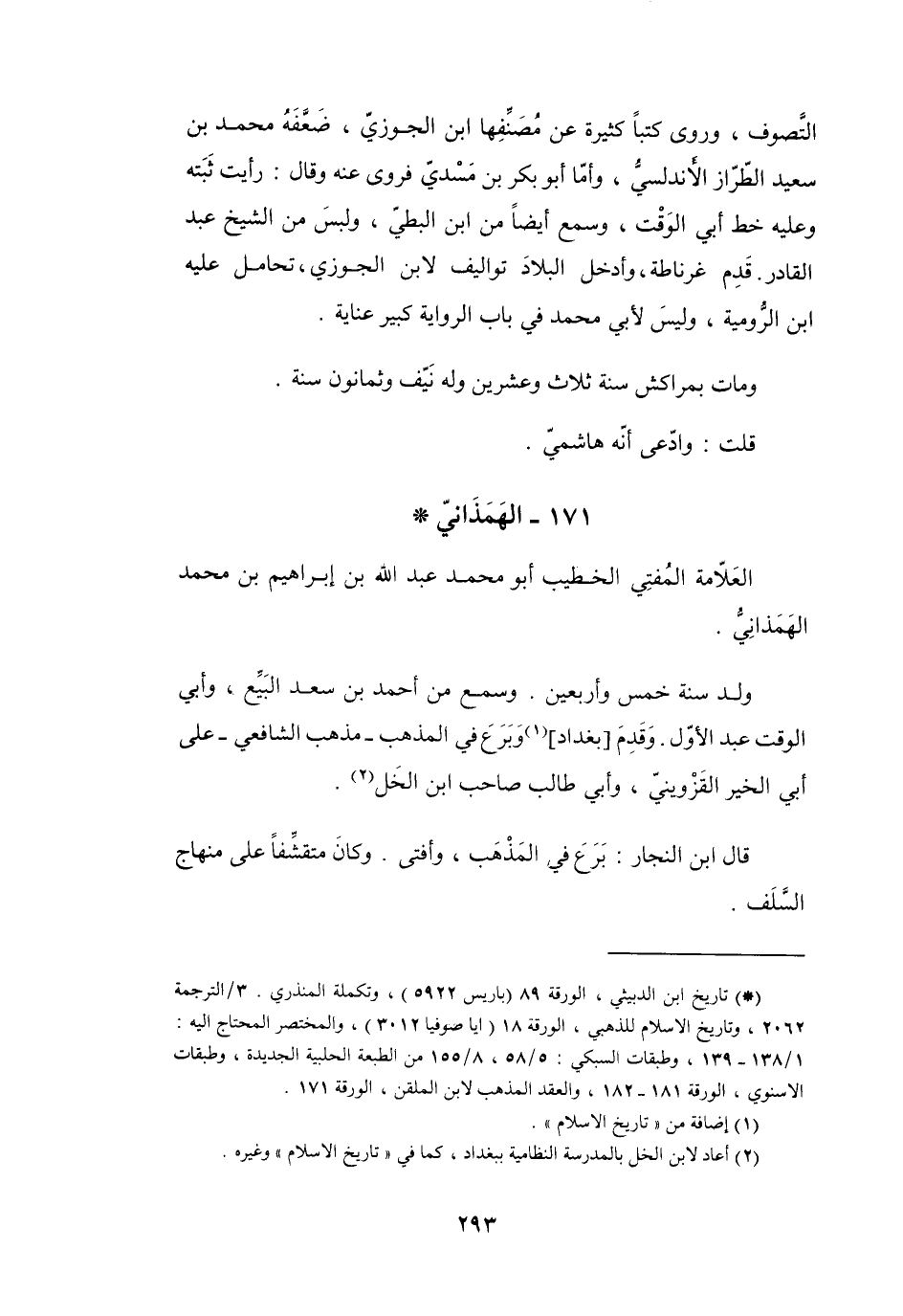 171 - الهَمَذَانِيُّ أَبُو مُحَمَّدٍ عَبْدُ اللهِ بنُ إِبْرَاهِيْمَ بنِ مُحَمَّدٍ *