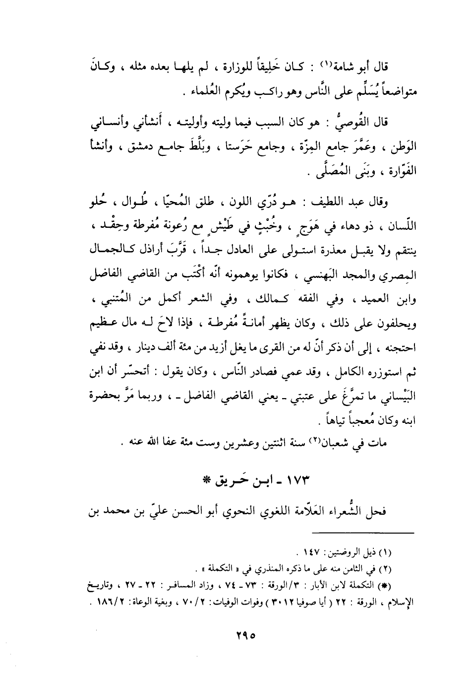 (*) التكملة لابن الابار: 3 / الورقة: 73 - 74، وزاد المسافر: 22 - 27، وتاريخ الإسلام، الورقة: 22 (أيا صوفيا 3012) وفوات الوفيات: 2 / 70، وبغية الوعاة: 2 / 186.