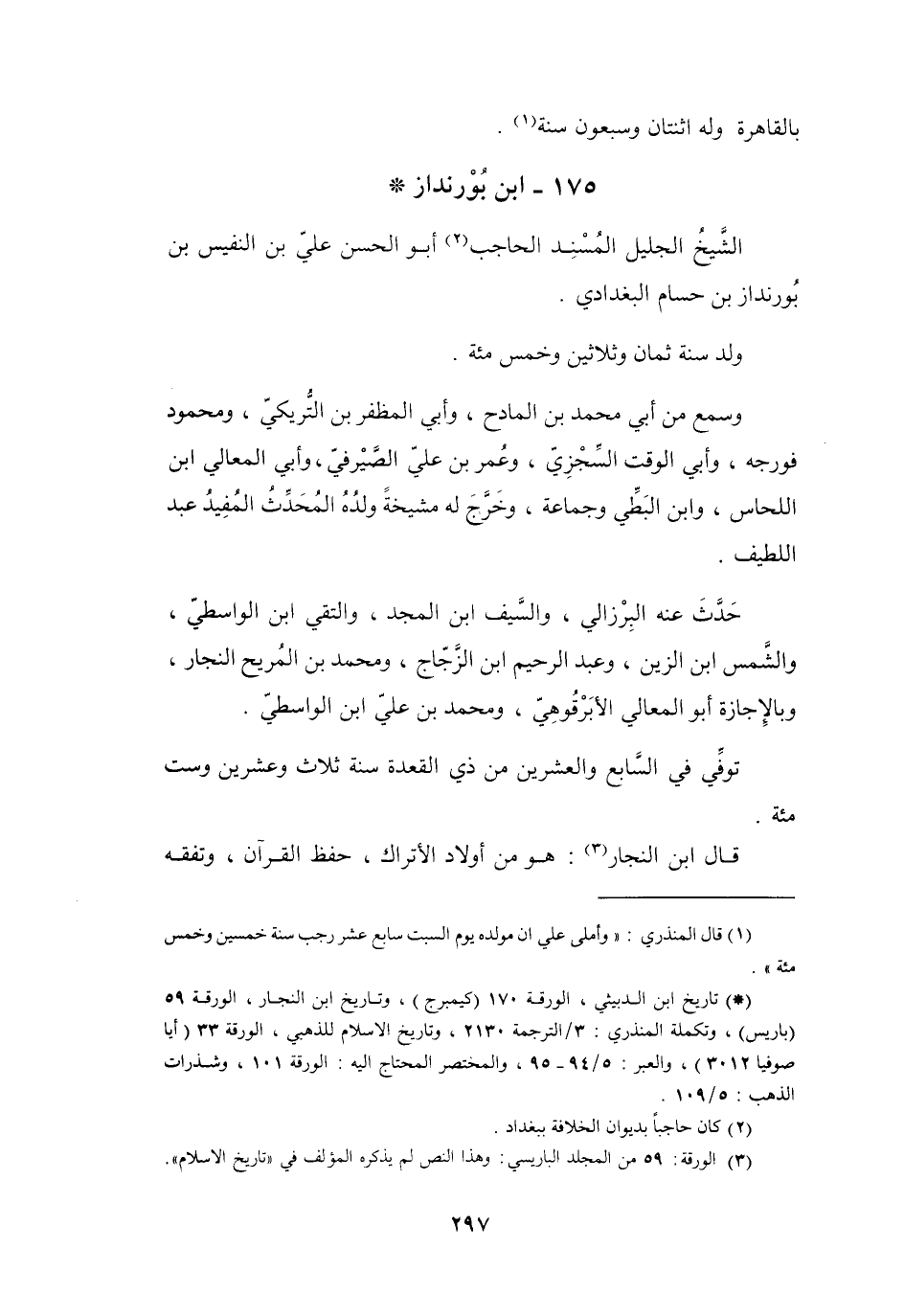 175 - ابْنُ بُوْرندَازَ أَبُو الحَسَنِ عَلِيُّ بنُ النَّفِيْسِ البَغْدَادِيُّ *
