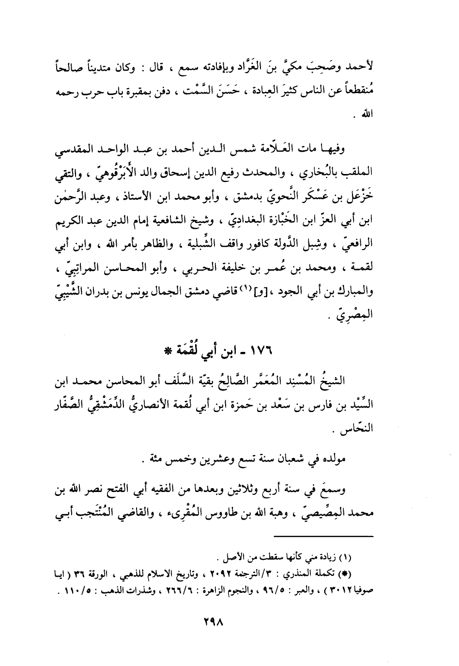 176 - ابْنُ أَبِي لُقْمَةَ مُحَمَّدُ بنُ السَّيِّدِ الأَنْصَارِيُّ *