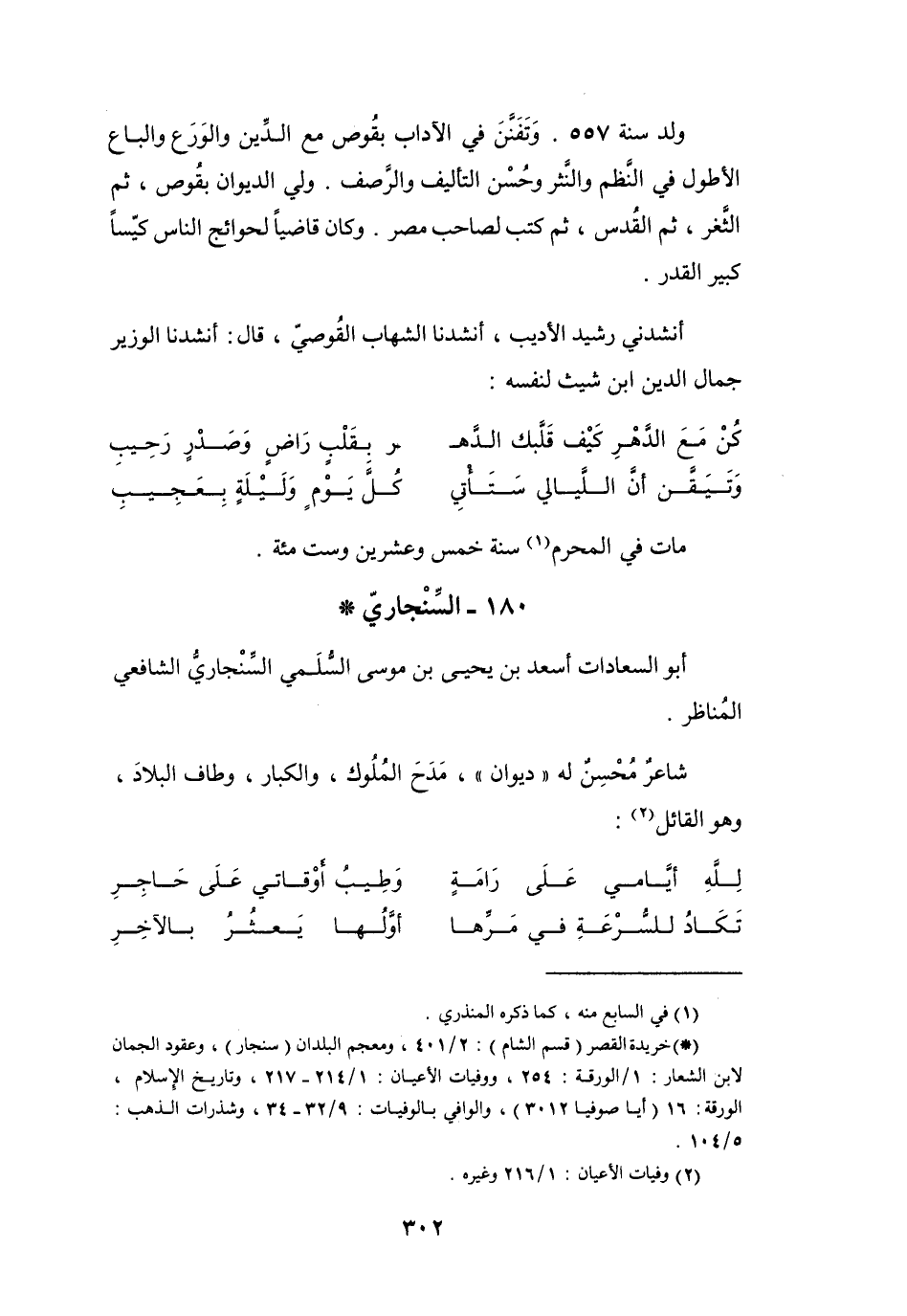(*) خريدة القصر (قسم الشام) : 2 / 401، ومعجم البلدان (سنجار) ، وعقود الجمان لابن الشعار: 1 / الورقة 254، ووفيات الأعيان: 1 / 214 - 217، وتاريخ الإسلام،