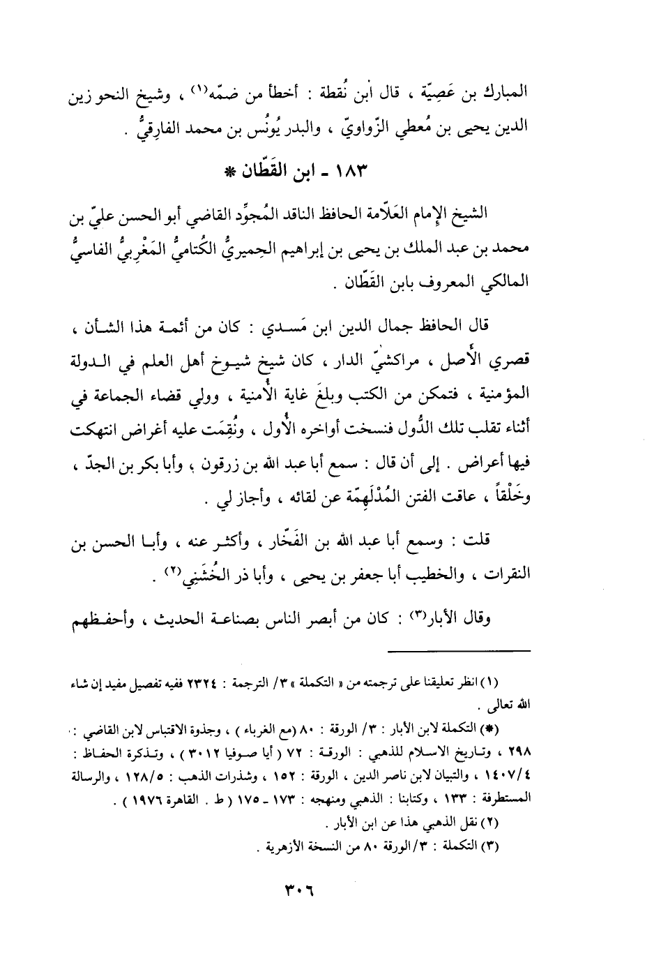183 - ابْنُ القَطَّانِ أَبُو الحَسَنِ عَلِيُّ بنُ مُحَمَّدٍ الحِمْيَرِيُّ *