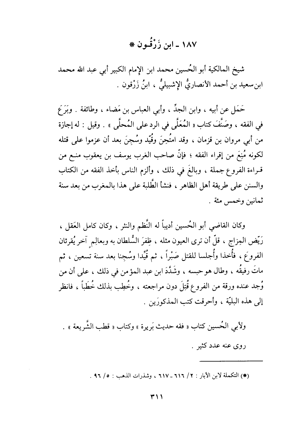 187 - ابْنُ زَرْقُوْنَ مُحَمَّدُ بن مُحَمَّدِ بنِ سَعِيْدٍ الأَنْصَارِيُّ *