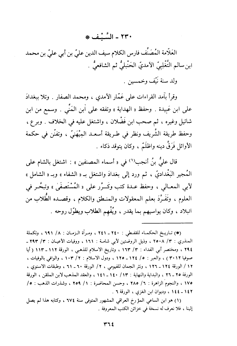 230 - السَّيْفُ عَلِيُّ بنُ أَبِي عَلِيٍّ بنِ مُحَمَّدٍ التَّغْلِبِيُّ *