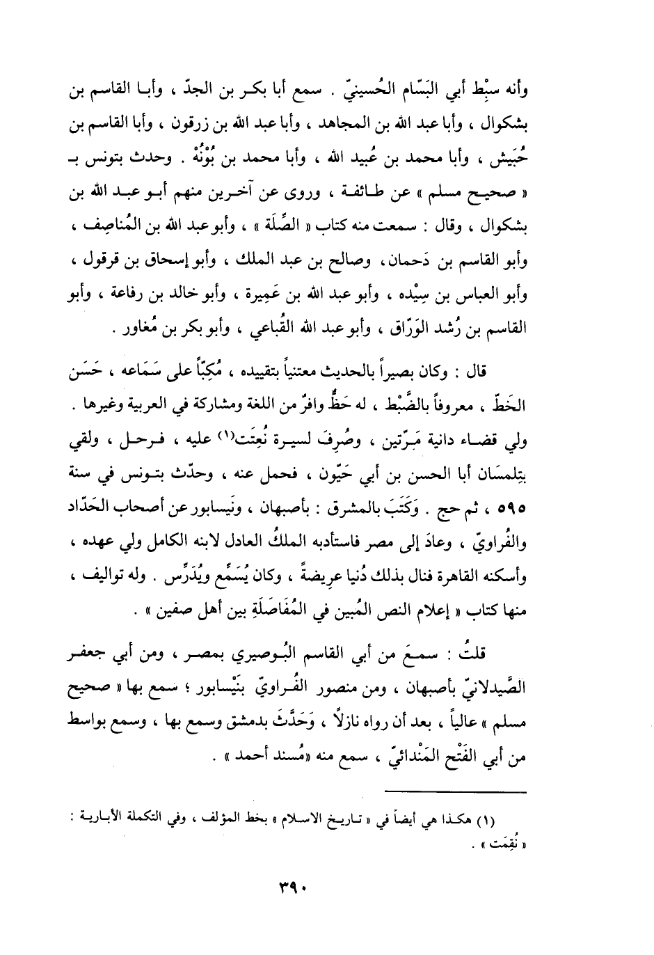 (1) هكذا هي أيضا في تاريخ الإسلام " بخط المؤلف، وفي التكملة الابارية: " نقمت ".