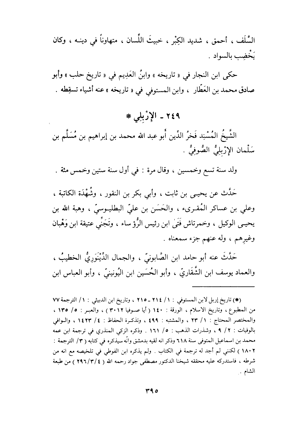 249 - الإِرْبِلِيُّ أَبُو عَبْدِ اللهِ مُحَمَّدُ بنُ إِبْرَاهِيْمَ بنِ مُسَلَّمٍ *