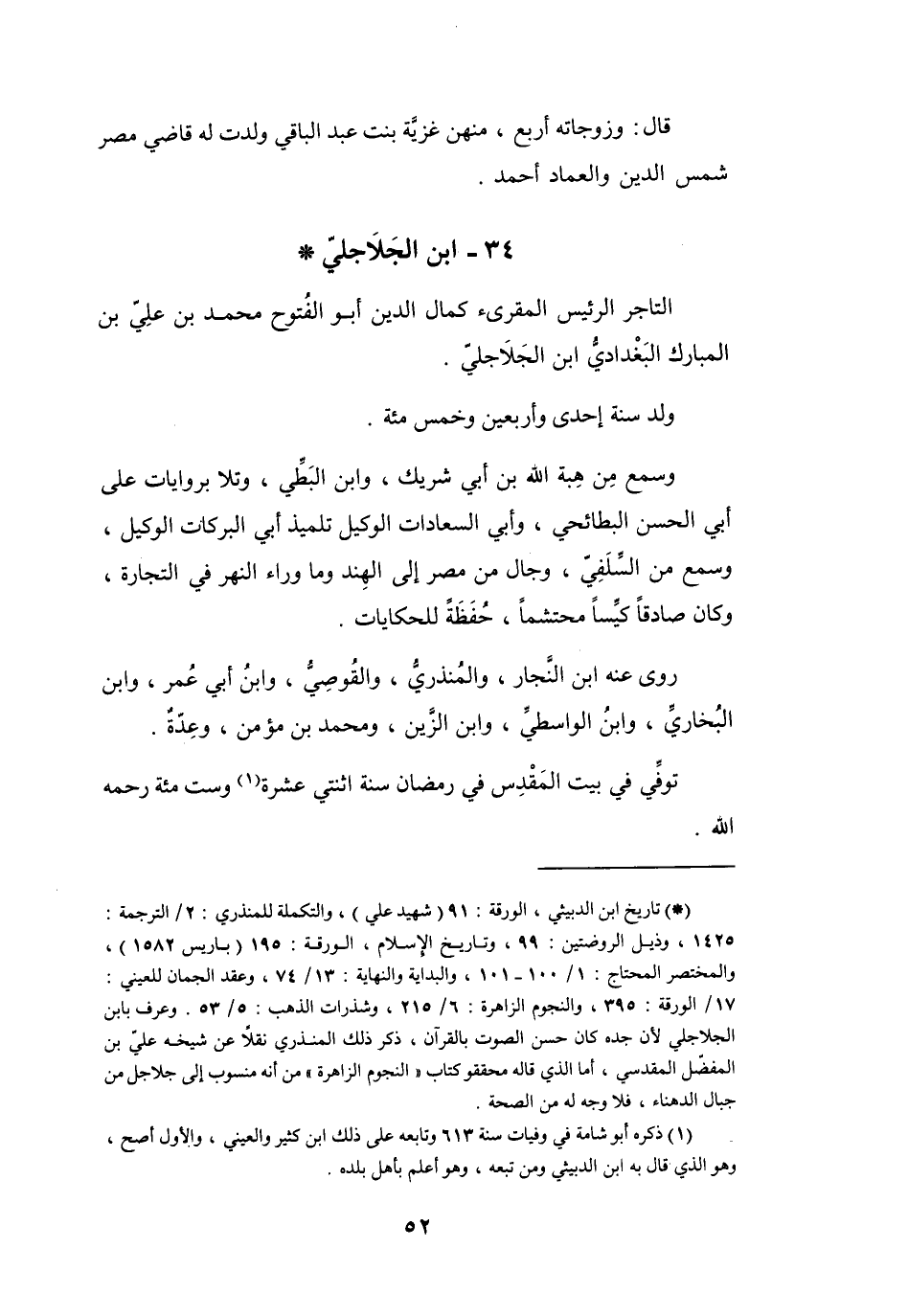 34 - ابْنُ الجَلاَجِلِيِّ مُحَمَّدُ بنُ عَلِيِّ بنِ المُبَارَكِ البَغْدَادِيُّ *