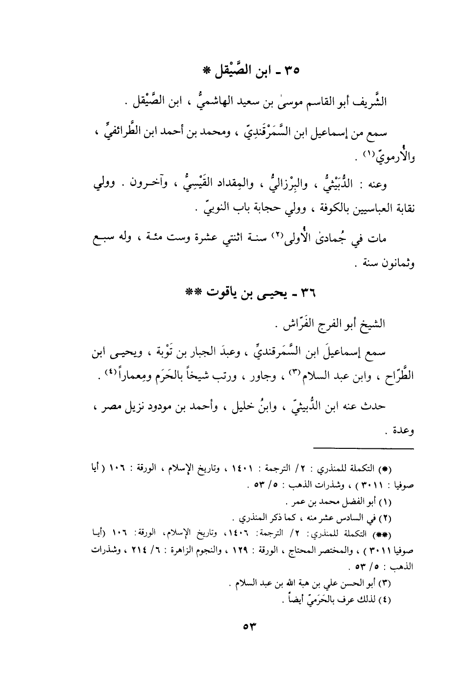 35 - ابْنُ الصَّيْقَلِ مُوْسَى بنُ سَعِيْدٍ الهَاشِمِيُّ *