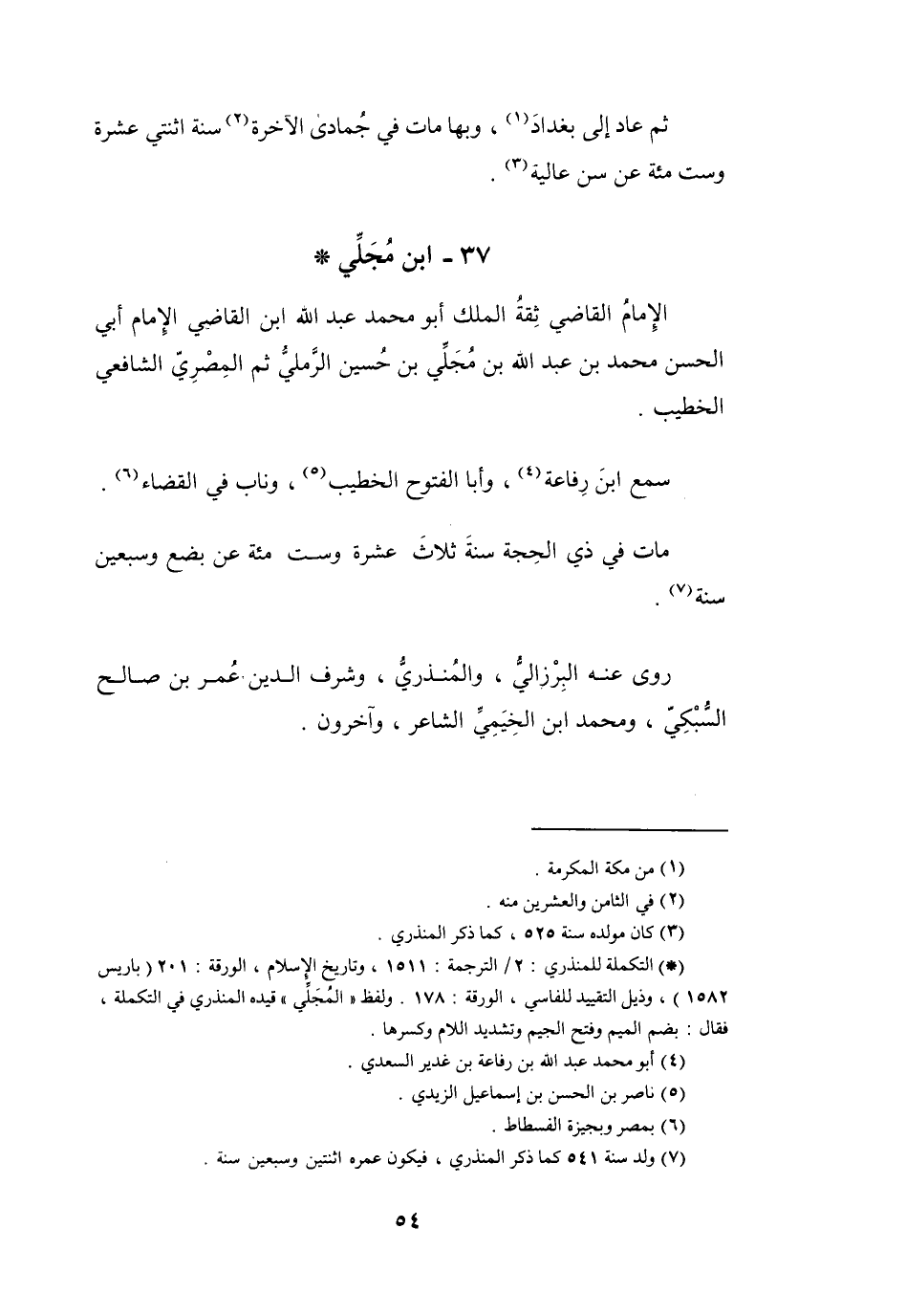 (7) ولد سنة 541 كما ذكر المنذري، فيكون عمره اثنتين وسبعين سنة.