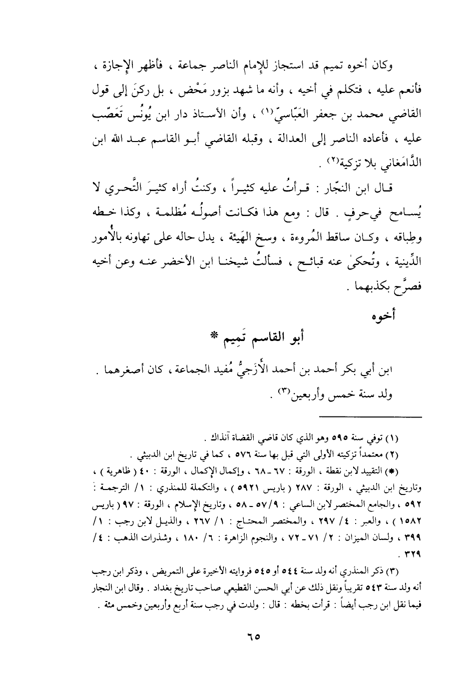 - أَبُو القَاسِمِ تَمِيْمُ بنُ أَبِي بَكْرٍ أَحْمَدَ بنِ أَحْمَدَ الأَزَجِيُّ