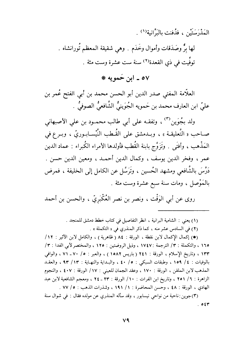 57 - ابْنُ حَمُّوَيْه مُحَمَّدُ بنُ عُمَر بنِ عَلِيٍّ الجُوَيْنِيُّ *